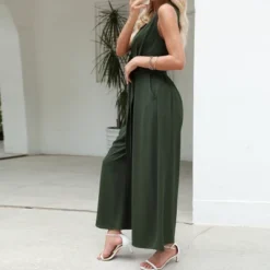 Women’s Green V-Neck Wide Leg Jumpsuit With Waist Tie – Cupshe