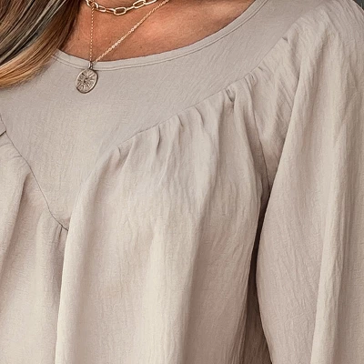 The Apricot Peasant Sleeve Shirred Top is all about radiating boho charm. With its delicate peasant sleeves and flattering shirred details, this top brings a touch of carefree elegance to your wardrobe. The soft and flowy fabric adds to the bohemian vibe, making it perfect for embracing sunny days and carefree vibes. Product code: CAA04D2L001AA