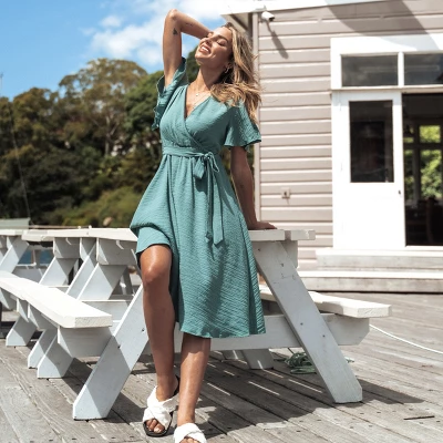 The woven Belted Flare Sleeve Midi Dress from Cupshe is a perfect choice for enjoying a sunny day. The surplice neckline adds a touch of elegance and a flattering look to the dress. The self-tie sash belt cinches the waist, creating definition and accentuating your figure. The short flared sleeves give it a playful and feminine vibe. Pair it with your favorite accessories and enjoy your sunny day in this lovely dress!Product Code: CAA05A3A026PP/CAA05A3A026TT