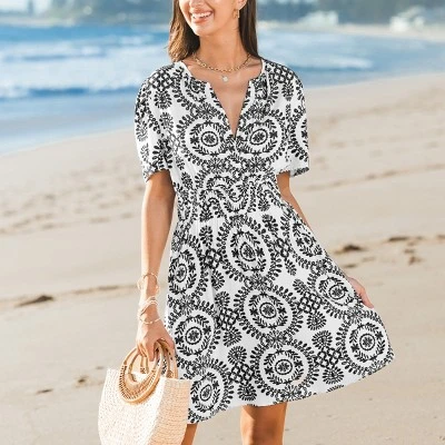 Effortlessly chic and breezy, this printed V-neck dress is perfect for beach days or casual summer outings. The vibrant teal and white pattern adds a bohemian touch, while the flowy silhouette and short sleeves keep you cool and comfortable. Pair it with sandals and a tote for an easy, stylish look.Product code: CAA05A5B162PC/CAA05A5B162AC/CAA05A5B162TC