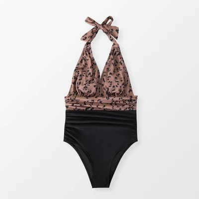 We are loving this cheetah print one-piece swimsuit for your summer wardrobe! Featuring a plunging halter neckline, shirred waist paneling for a flattering effect, back self-tie closure, and classic bum coverage.Product Code: CAA12E2D002HAMain Image Model Wearing Size: SHeight: 5′ 5” in165 cmBust: 34 in86 cmWaist: 26 in66 cmHips: 37 in 94 cm