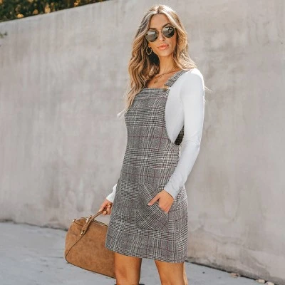 - Stylish plaid pinafore dress with adjustable straps for a custom fit