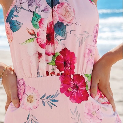 Embrace the beauty of summer with this stunning floral maxi dress. Featuring a vibrant all-over pink floral print, this dress exudes femininity and romance. The halter neckline adds a touch of elegance, while the tiered ruffle skirt creates a flattering, flowy silhouette. Perfect for beach vacations, weddings, garden parties, or any summer occasion, this dress is a must-have for your warm-weather wardrobe.Product code: CAA05A5C061DD