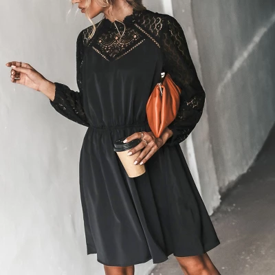 We have the perfect date night look for you babe with this Long Sleeves Elastic Waist Mini Dress from Cupshe! This chic black mini dress features a round neckline, elasticized waist for your comfort, lace trim on the yoke and long peasant sleeves, with an A-line silhouette, making it the perfect choice for a blend of style and comfort.Product Code: CAA05A2G021AA