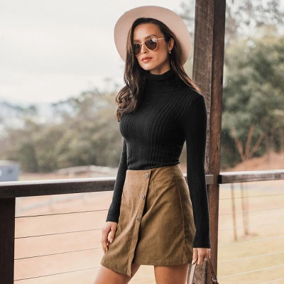- Ribbed Knit with Turtleneck Design