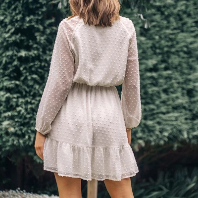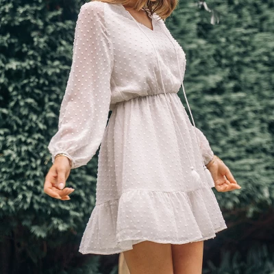 Show your feminine style with this Ruffle Lace Up Mini Dress from Cupshe. This Ruffle Lace Up Dress features with V-neck and front tie design. Drawstrings at the waist can curve your better waistline. Chiffon material creates a sense of light and graceful. Wear this dress with strappy heels for a look we love.Product Code: CAA05A3A073GGModel Wearing Size: SHeight:5‘9’ in / 175 cm Bust:34 in / 86 cmWaist:25 in / 64 cm Hips:37 in / 94 cm
